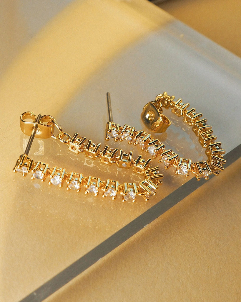 * Made from Brass with CZ Crystals * Plated Gold * Posts are made from surgical steel so they are very hypo-allergenic for sensitive ears * Earrings are 100% nickel-free and cadmium-free * Plating is waterproof and tarnish free * Plating details: 0.3 microns + e-coating for long lasting durability * Plated high polish 14K Gold or Rhodium for maximum shine