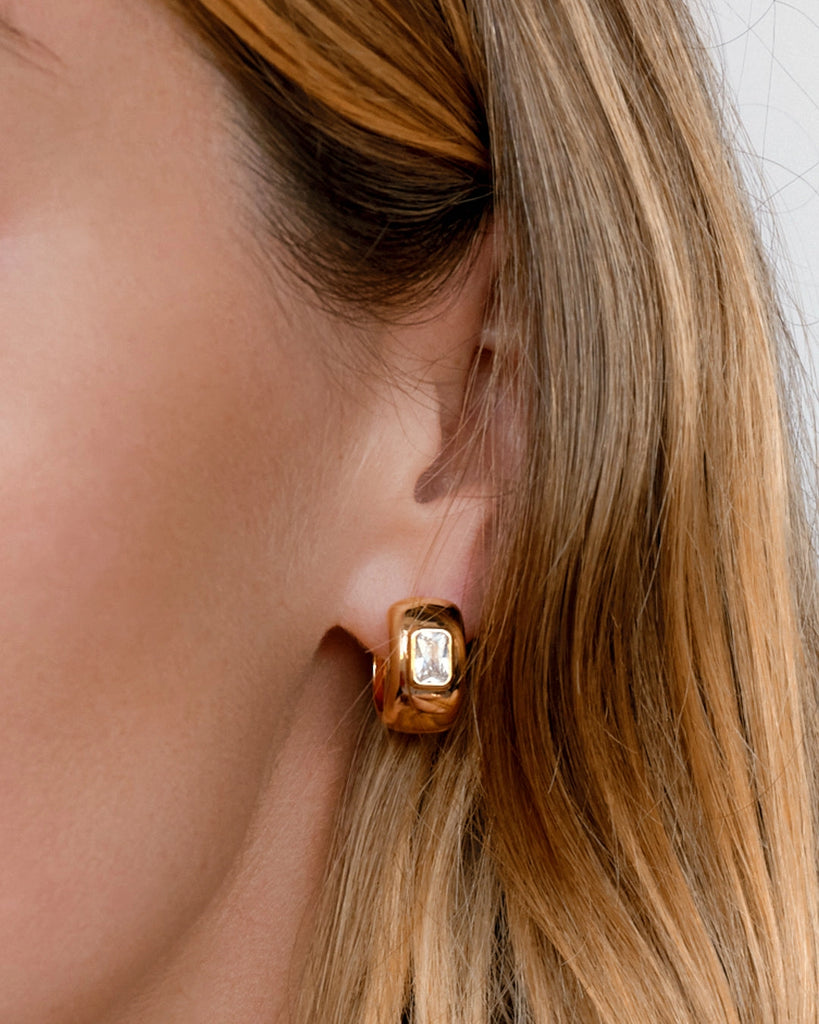 * Made from plated brass with CZ stones * Plating is waterproof and tarnish free * Plating details: 0.3 microns + e-coating for long lasting durability * Plated high polish 14K Gold or Rhodium for maximum shine * Earrings are 100% nickel-free and cadmium-free