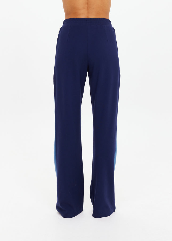 - Flared pant with splits at hem colour blocked in shades of blue