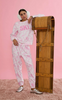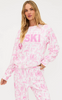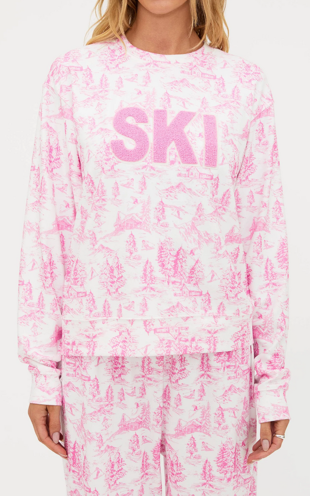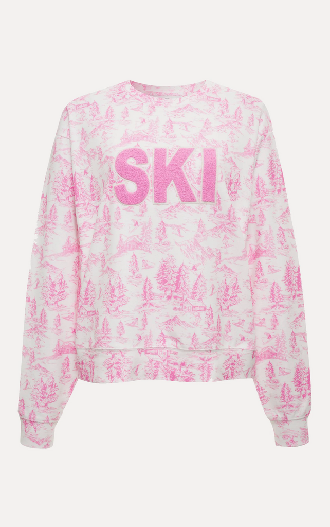 • Allover pink toile print inspired by snowy mountain scenes
