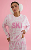 • Oversized chenille “SKI” patch detail