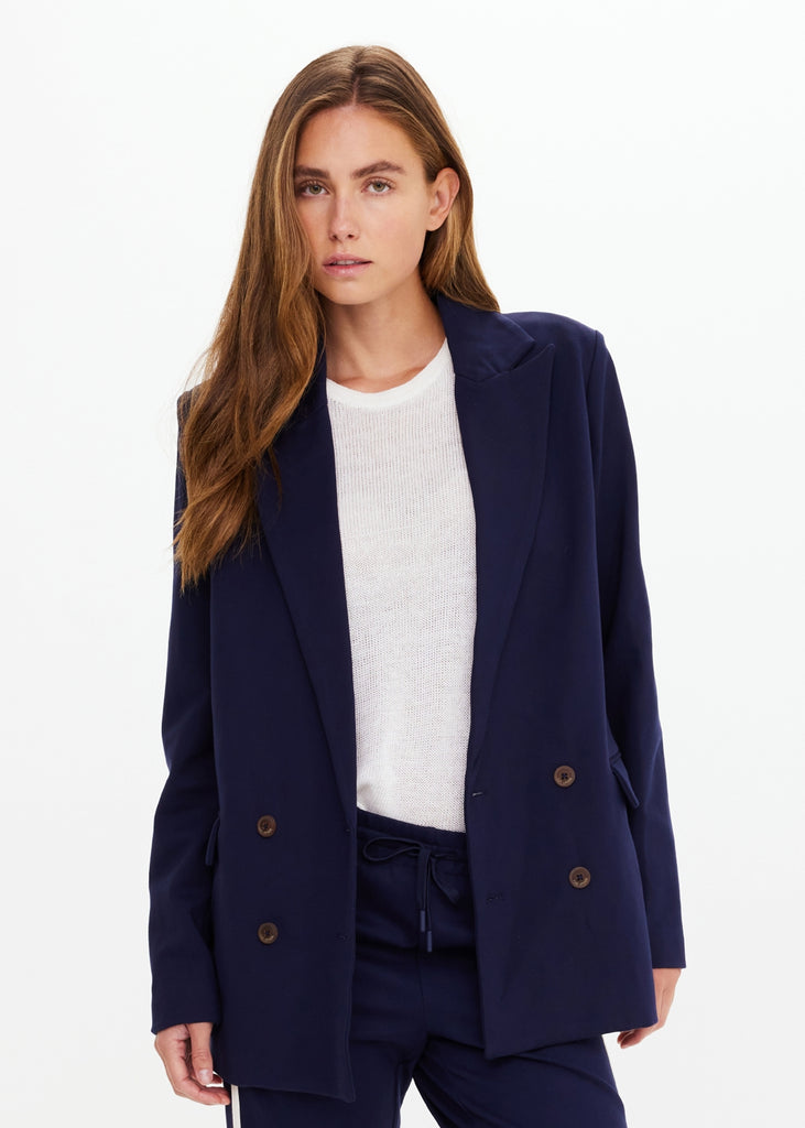- Double breasted blazer in lenzing viscose soft suiting fabrication in navy