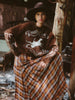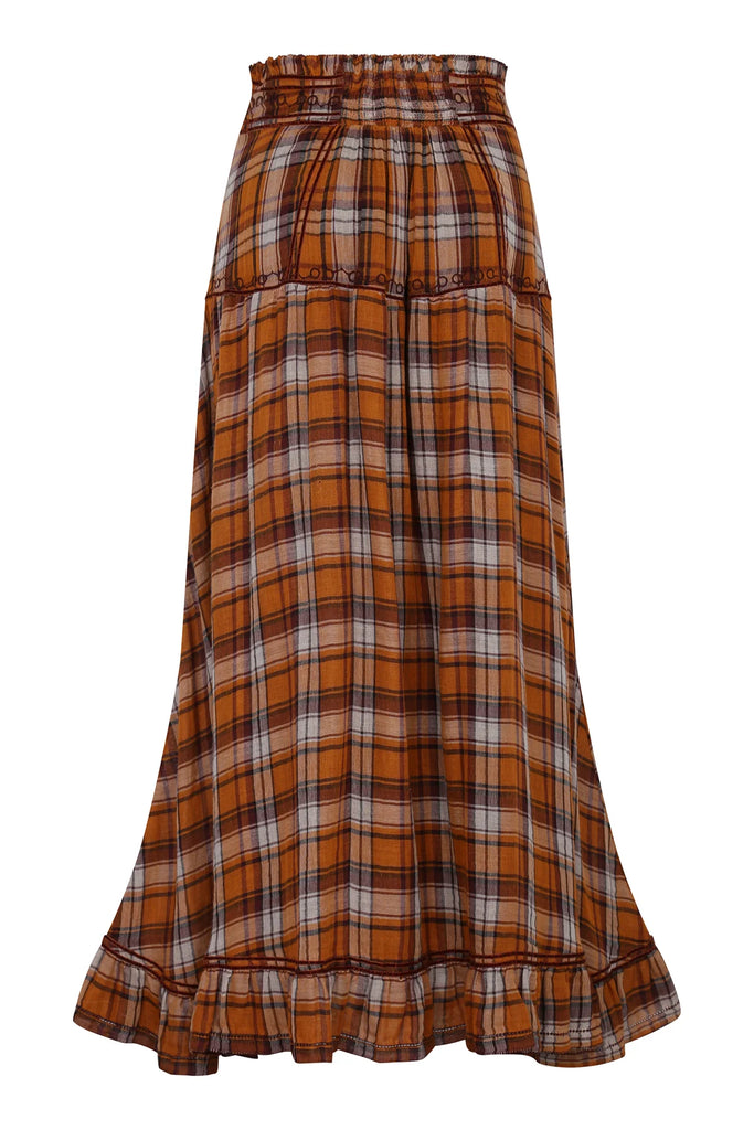 - Features contrast stitching details along the hip panel and a subtle ruffle along the hemline