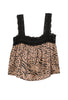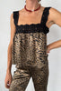 The Leah Top in leopard silk is our early 2000's dream top. Its bold black lace straps and neckline add flirty flair to the cropped, boxy fit, making it a fun staple for any outfit. Pair it with our Kaja pant to stand out and you'll never wait in line at the club again.