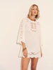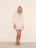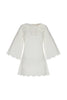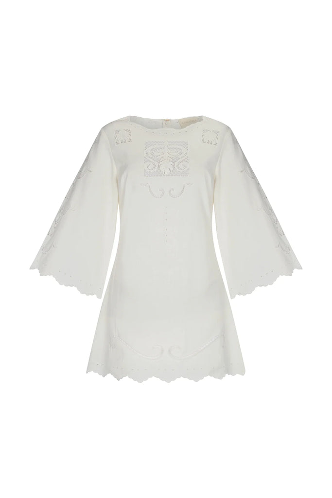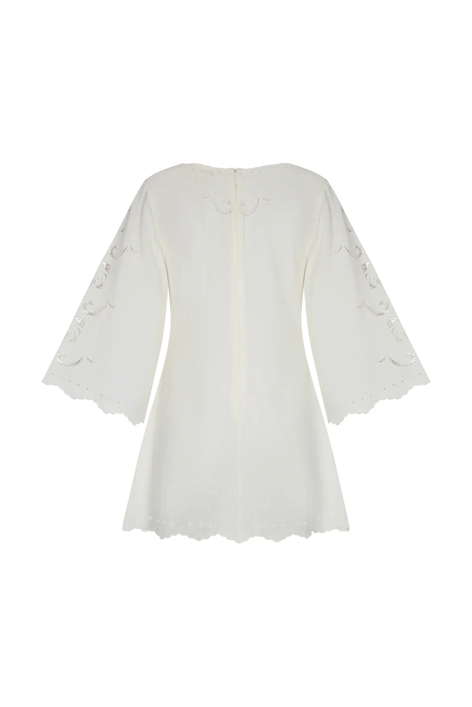 White mini dress with elbow-length bell sleeves