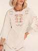 Intricate cut-out embroidery scrolls and geometric patterns