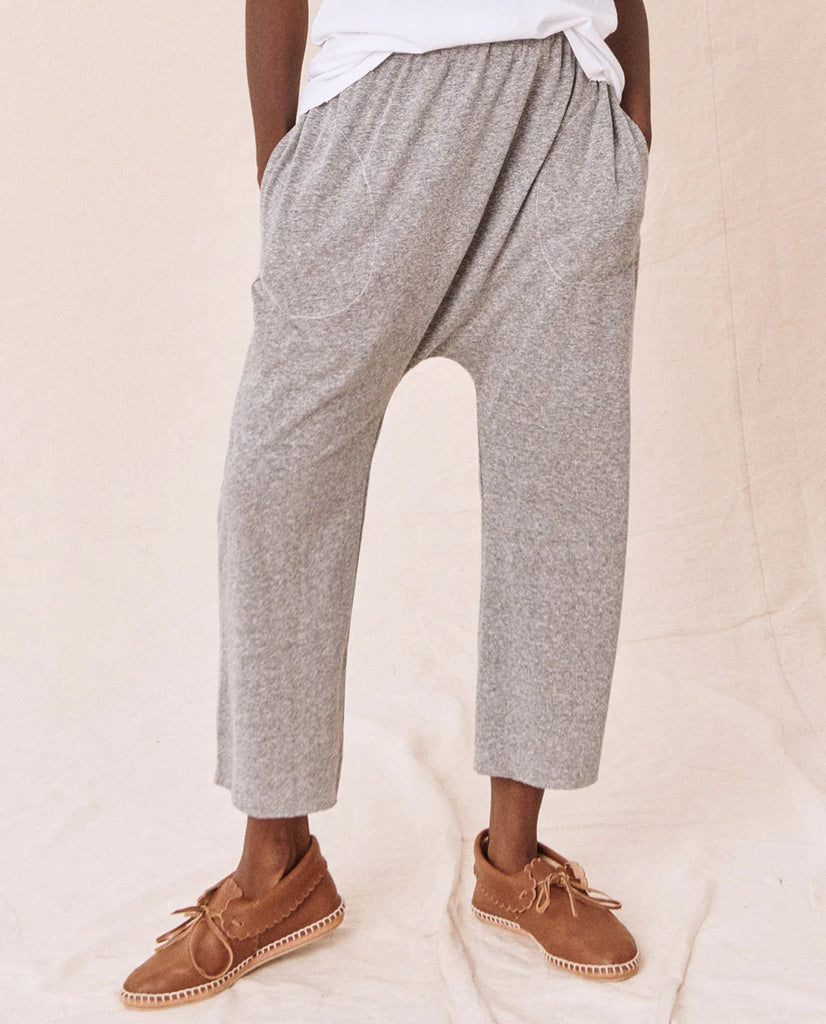 A look all its own, The Jersey Crop. is an elastic waist jersey pant with our signature dropped rise and a wider straight leg. The ultimate in casual, we love this pant with a tee and our beloved BIRKENSTOCKS. Handcrafted locally in Los Angeles, our process ensures beauty and uniqueness—no two pieces are alike.