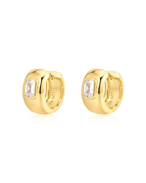 The Emerald Bezel Stone Huggies