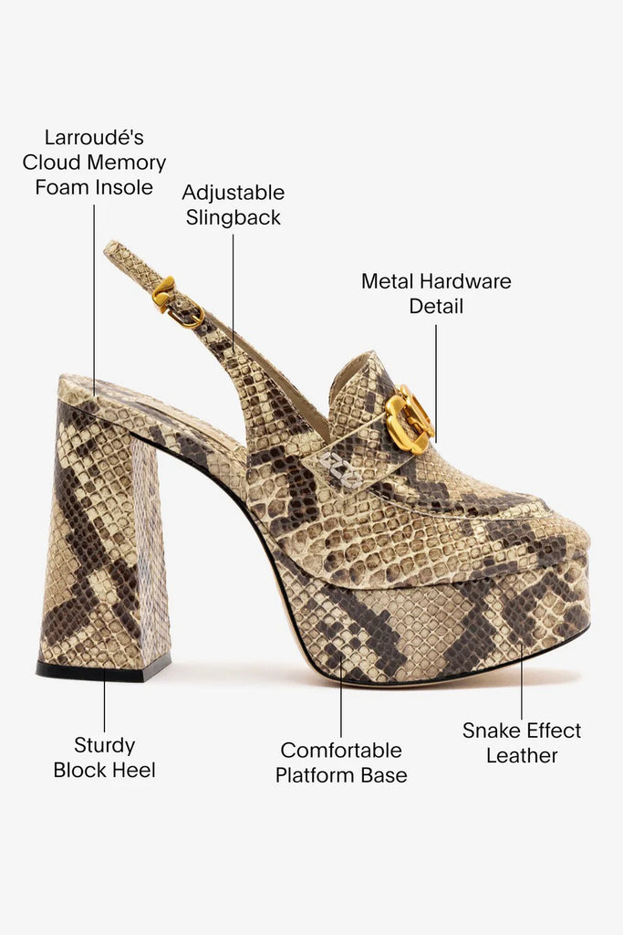 Reach new heights in this bold take on the classic loafer. Set on a sky-high platform and finished with a sleek slingback strap for a modern twist—and a secure fit—it's equal parts power move and everyday essential.