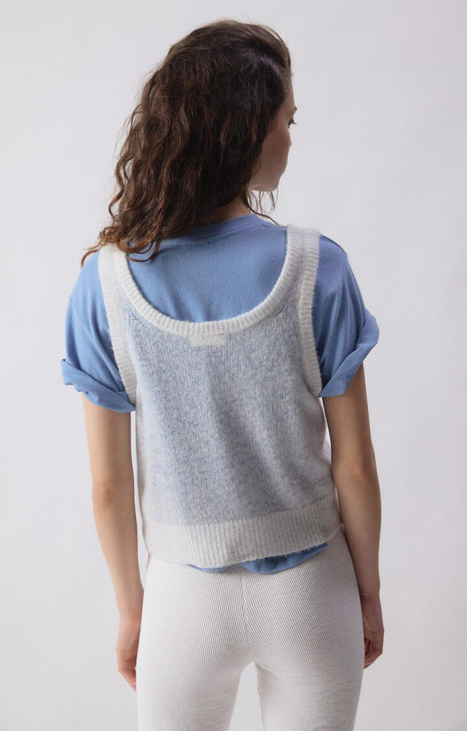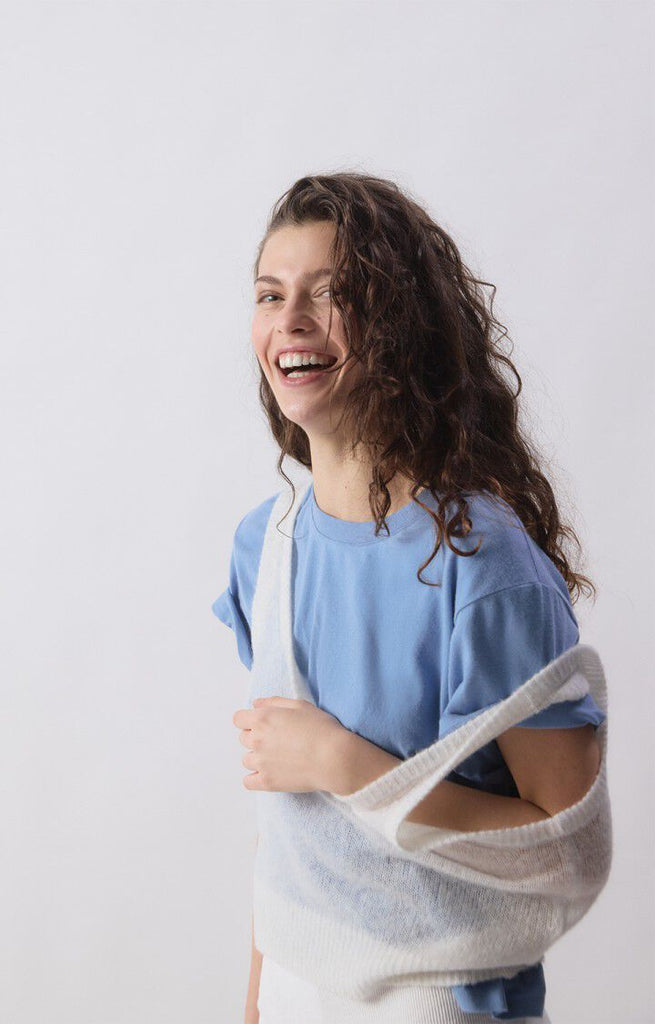 The Bodyrow jumper with thin straps is appealing thanks to its fine, cloud-like knit, which is both lightweight and ultra-soft. Made from a delicately openwork knit, it offers an incomparable feeling of finesse and lightness. Its brushed texture on the outside reveals an irresistible fluffy appearance. A feminine and delicate piece, perfect for enhancing the silhouette with softness and refinement.