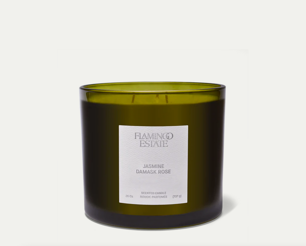 Our Jasmine Damask Rose XL Candle is probably the most beautiful fragrance we’ve ever created. This Holiday season, we’ve more than tripled it in size and hand-wrapped it in a beautiful custom Gift Box. The result is a room full of flowers with a fragrance that’s one of my favorites at the Estate — creeping in from the terrace and enveloping every room during hot Summer nights. We combined the intoxicating Jasmine with sweetly floral Damask Rose, and bright waves of Bergamot and Orange Blossom. Hand-poured in LA in an oversized, hand-blown glass vessel, triple-wicked and ready to burn for weeks.
