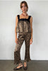 The Kaja Pant in Leopard is our new favorite and hopefully yours too. The Kaja Pant features a side zip and a fluttery ruffle detail at the bottom hemline. Meant to sit at your natural waist with a slightly flared leg opening, this super flattering fit makes the Kaja the perfect pant to grab when jet lag lingers and you'd prefer to stay in bed but your pajamas don't quite meet the dress code.
