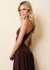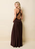 The Maggie Dress is a striking maxi silhouette featuring a deep V neckline and a curved waist seam for a flattering fit. Cross-back straps lead to a low scoop back, blending a sexy front with a sporty back. Effortless and elevated, it's a versatile style made to move with you.