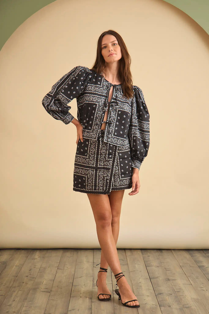 The Powell Skirt returns in our Aces Wild bandana print perfect for elevated fall dressing. Designed with a banded waist and sleek wrap silhouette, it fastens with a discreet snap closure for a clean, polished finish. Powell is a true statement piece that works from day to night.