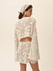 A cotton crochet skirt at home in spring gardens and seaside air, this flared skirt features custom floral appliqués and playful scalloped edges. Complete the look with the Sara Top.