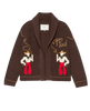 A reimagined version of our signature Lodge Cardigan, this piece features a hand-embroidered cowboy and lasso spelling out “yeehaw”—a playful detail inspired by a 1960s children’s sweater. Spun from a soft cotton blend yarn, it’s cozy, comfortable, and full of character. Designed with ease throughout the body.
