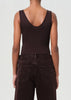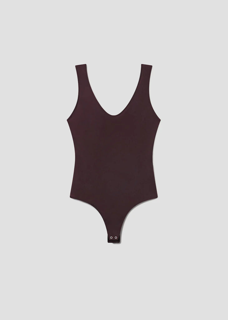Looks Like: Deep dark brown scoop neck bodysuit