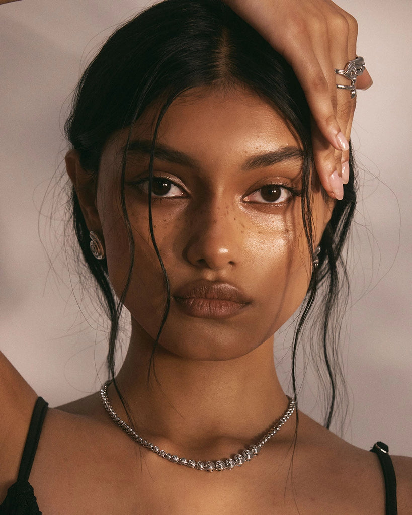 * Statement necklace featuring a continuous line of CZ stones set in smooth, wave-shaped bezel settings * Necklace is 16” * Necklace weighs 22.43 grams * Part of the Night Swim Collection *  Made from plated brass * Plating is waterproof and tarnish free * 14K plated brass and Rhodium plated silver with E-Coating * Plated high polish 14K Gold or Rhodium for maximum shine * Necklace is 100% nickel-free and cadmium-free