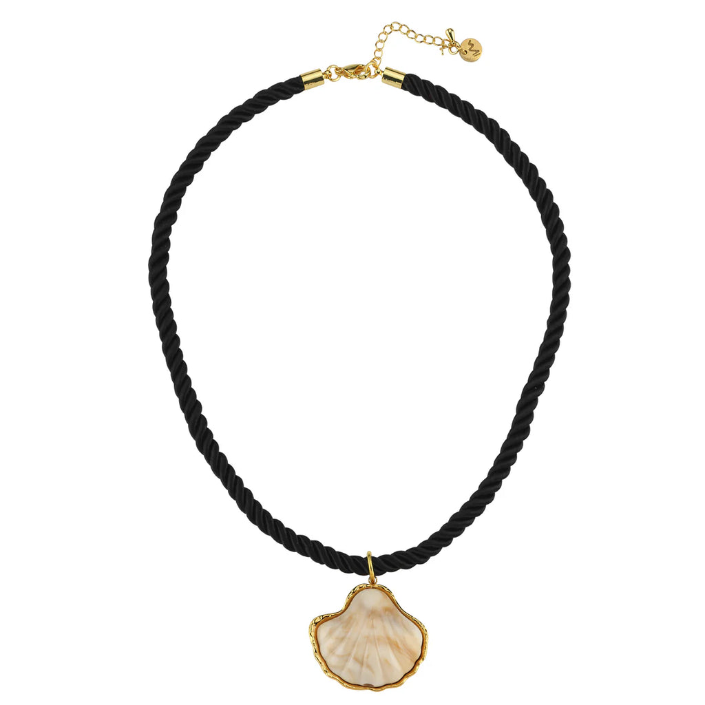 The Dune necklace features a sleek black cord with a sculptural shell-shaped pendant. Minimal yet striking, it’s a versatile piece that brings a touch of natural elegance to any outfit.