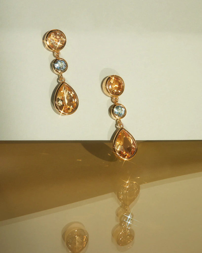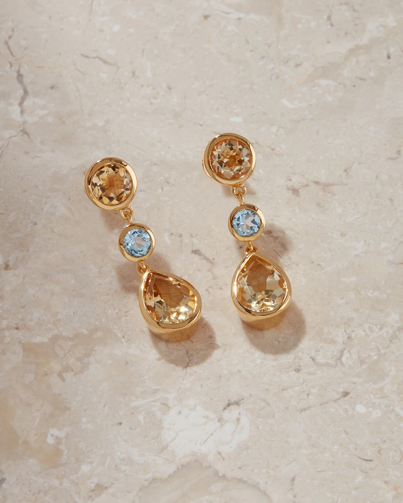 • Multi-stone drop stud earrings featuring Citrine and Blue Topaz stones